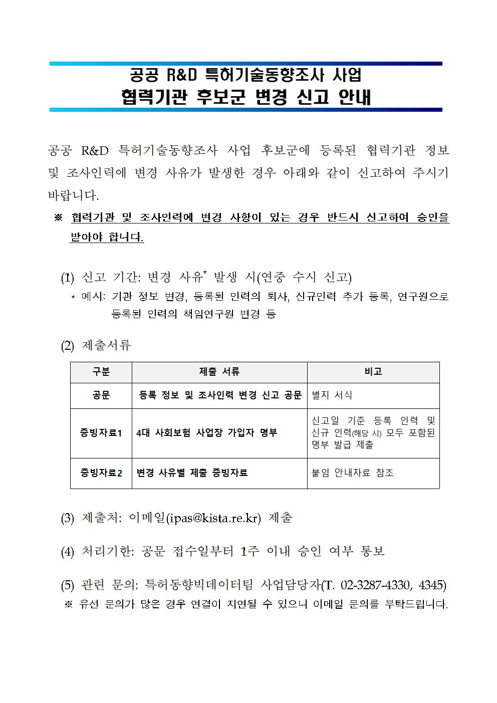 2023년도 공공 RnD 특허기술동향조사 사업 협력기관 후보군 변경 신고 안내