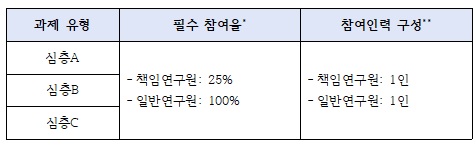 (특히, 일반연구원의 참여율은 1인 100%여야 하며, 2인이 40% 또는 60%로 나누어 신청 불가)